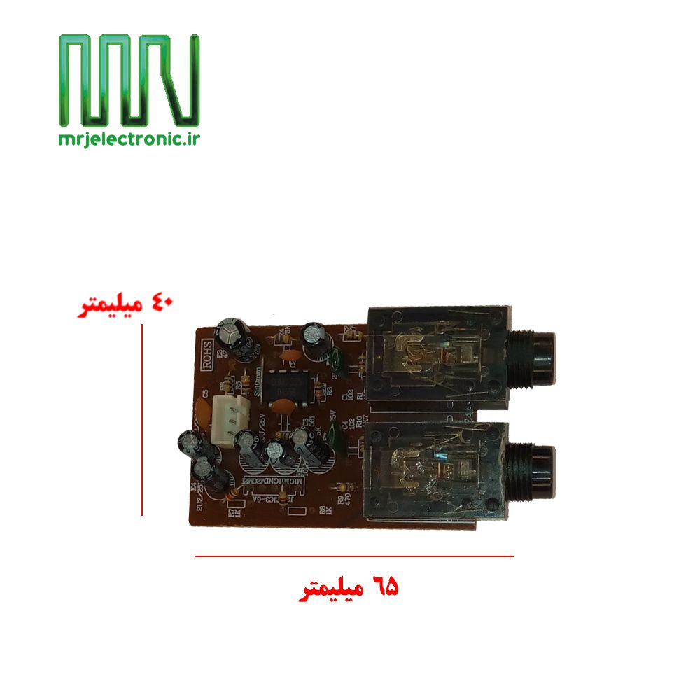 در این ماژول شما می توانید با اتصال یک یا دو میکروفون همزمان صدای خروجی داشته باشید و جهت تقویت صدا آن را به یک آمپلی متصل نمایید .